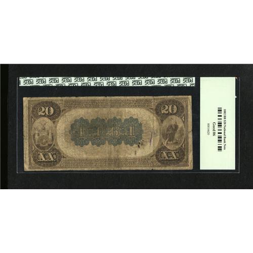 <B>New York, NY</B></I> - $20 1882 Brown Back Fr. 496 <B>The National City Bank</B></I> Ch. # 1461<BR>Boldly printed signatures set this <B>PCGS Good 06</B></I> note off from the usual fare found at this grade level.<BR><BR><b>Shipping:</b> Coins & Currency (<a target="_blank" href="http://www.heritageauctions.com/common/shipping.php">view shipping information</a>)