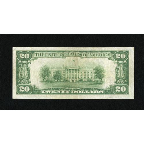 <B>New York, NY</B></I> - $20 1929 Ty. 1 <B>The First NB</B></I> Ch. # 29<BR>The bank title is shifted dramatically upwards on this National error. National errors are just plain rare. <B>Very Fine+.</B></I><BR><BR><b>Shipping:</b> Coin/Currency (<a target="_blank" href="http://www.heritageauctions.com/common/shipping.php">view shipping information</a>)