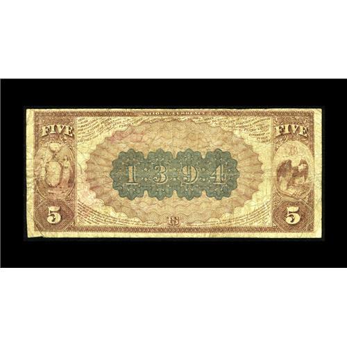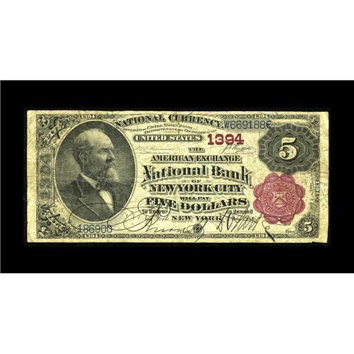<B>New York, NY</B></I> - $5 1882 Brown Back Fr. 471 <B>The American Exchange NB</B></I> Ch. # 1394<BR>This attractive example with ornate signatures is very suitable for type. A few internal tears are seen that detract little from this clean example. <B>Very Good.</B></I>