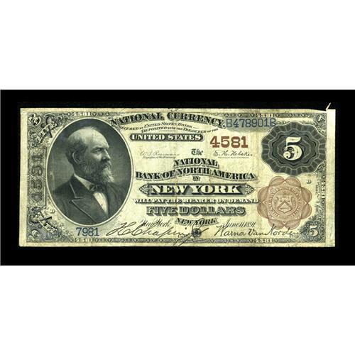 <B>New York, NY</B></I> - $5 1882 Brown Back Fr. 472 <B>The NB of North America</B></I> Ch. # 4581<BR>A <B>Fine</B></I> example for type from an issuer with a fair number of high grade survivors.<BR><BR><b>Shipping:</b> Coin/Currency (<a target="_blank" href="http://www.heritageauctions.com/common/shipping.php">view shipping information</a>)