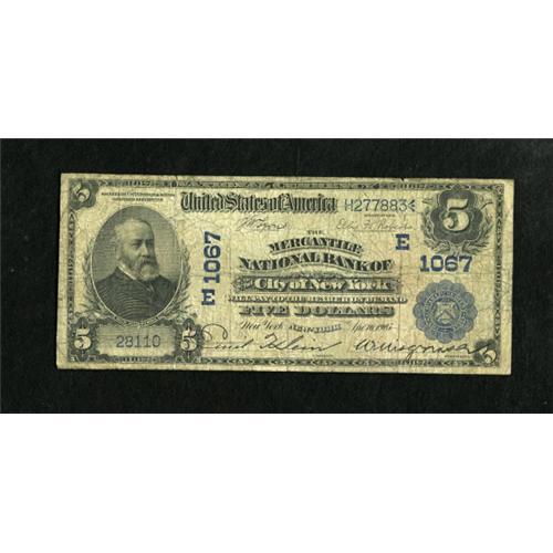 <B>New York, NY</B></I> - $5 1902 Date Back Fr. 590 <B>The Mercantile NB</B></I> Ch. # (E)1067<BR> There was not a single 1902 Date Back in the census for this bank before the appearance of this note. <B>Very Good.</B></I><BR><BR><b>Shipping:</b> Coins & Currency (<a target="_blank" href="http://www.heritageauctions.com/common/shipping.php">view shipping information</a>)