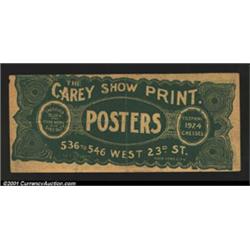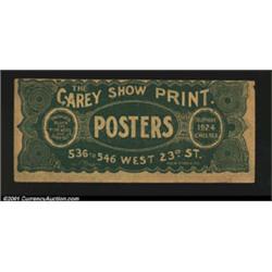 New York, NY - Carey Show Print Posters Advertising NoteAn early 20th century ad note in all green on both sides.<p>Location far on the west side of Chelsea, now the location of many art galleries. First we have seen. Very Fine. Important notice: We expect to be auctioning lots at the rate of 200-250 per hour. Sometimes eBay Premier live bid software cannot keep up with that pace, so we strongly recommend that you place a realistic proxy bid now as insurance to avoid disappointment. Also please note that all Heritage/CAA lots purchased through eBay Premier carry a 20% Buyer's Premium.