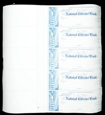 New York, NY - Harlem and Spuyten Duyvil Navigation Co. Uncut Remainder Sheet of Four Checks drawn on the National Citiz. A few tears are seen on this uncut sheet of four remainder checks that include a wide area of selvage at left. The checks were printed in an attractive shade of blue ink by G.F. Nesbitt & Co. N.Y. The left panel includes an appealing train trestle over water vignette.