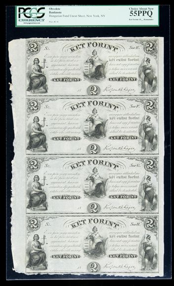 New York, NY - Hungarian Fund Uncut Remainder Sheet of Four. $2-2-2-2. PCGS Choice About New 55PPQ. Vignettes of three women are found on these notes.