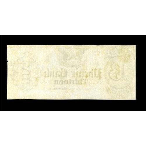 <B>New York, NY- Phenix Bank</B></I> $13 G112 Proof<BR> Another great note which came to this collection from the Schingoethe sale of July, 2006, ex-Western Reserve sale of 1996. There is a tiny bit of handling on this note, along with a fold near the top, but if rarity and desirability are any guide, expect the $2990 paid in its last appearance to be exceeded this evening. <B>Extremely Fine-About Uncirculated.</B></I><BR><I>From The Collection of a Louisiana Gentleman.</B></I><BR><BR><b>Shipping:</b> Coins & Currency (<a target="_blank" href="http://www.heritageauctions.com/common/shipping.php">view shipping information</a>)