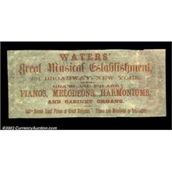 New York, NY- Waters' Great Musical Establishment Ad NoteA neat Ad Note on the reverse of a remainde
