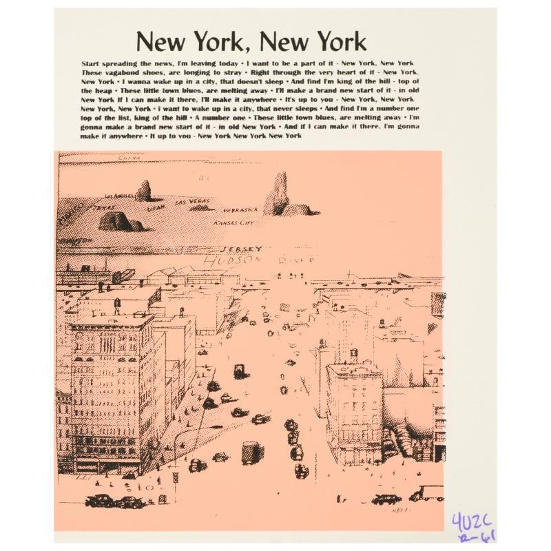 New York, New York By "Ringo" Daniel Funes. "New York, New York" is a one-of-a-kind hand-pulled silkscreen on canvas by Ringo (Daniel Funes) - protege of Andy Warhol's apprentice, Steve Kaufman. This piece is hand signed by the artist and Includes Letter of Authenticity. This piece comes from the Andy Warhol Legacy Series. Measures approx. 14" x 16" (image). ** Please note: the signature for this piece is located within the right border and will be outside the display image when framed unless the piece is framed flat. **