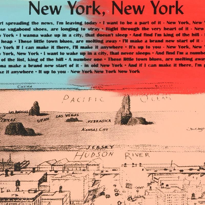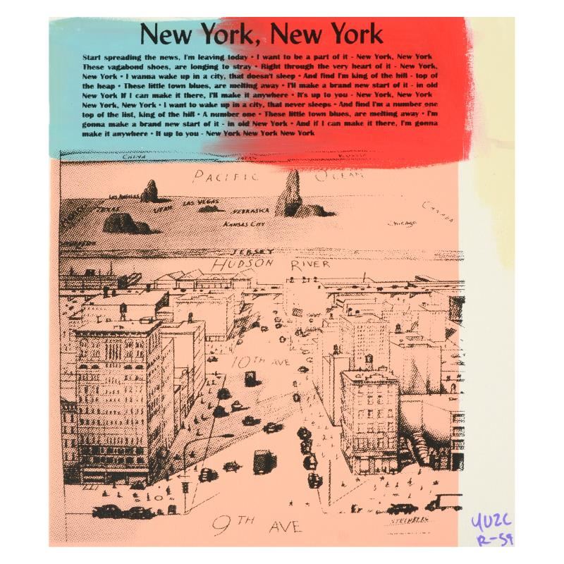 New York, New York By "Ringo" Daniel Funes. "New York, New York" is a one-of-a-kind hand-pulled silkscreen and mixed media painting on canvas by Ringo (Daniel Funes) - protege of Andy Warhol's apprentice, Steve Kaufman. This piece is hand signed by the artist and Includes Certificate of Authenticity. This piece comes from the Andy Warhol Legacy Series. Measures approx. 14" x 16" (image). ** Please note: the signature for this piece is located within the right border and will be outside the display image when framed; see photo for reference. **