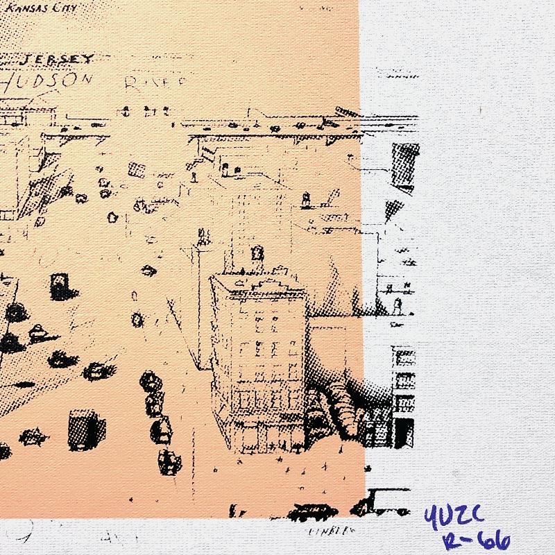 New York, New York By "Ringo" Daniel Funes. "New York, New York" is a one-of-a-kind hand-pulled silkscreen on canvas by Ringo (Daniel Funes) - protege of Andy Warhol's apprentice, Steve Kaufman. This piece is hand signed by the artist and Includes Letter of Authenticity. This piece comes from the Andy Warhol Legacy Series. Measures approx. 14" x 16" (image). ** Please note: the signature for this piece is located within the right border and will be outside the display image when framed unless the piece is framed flat. **