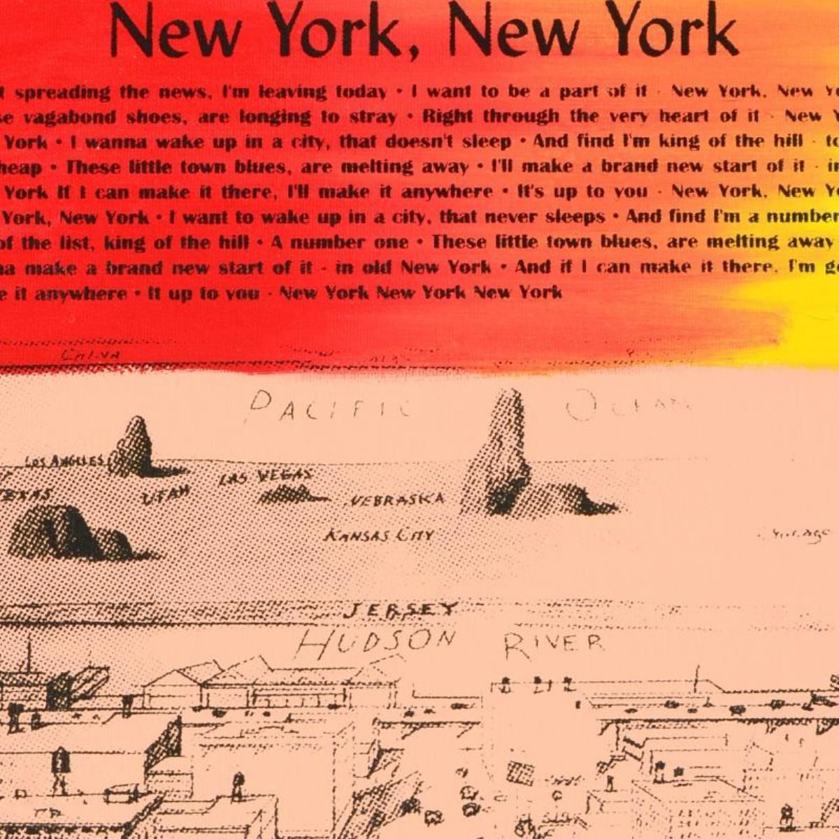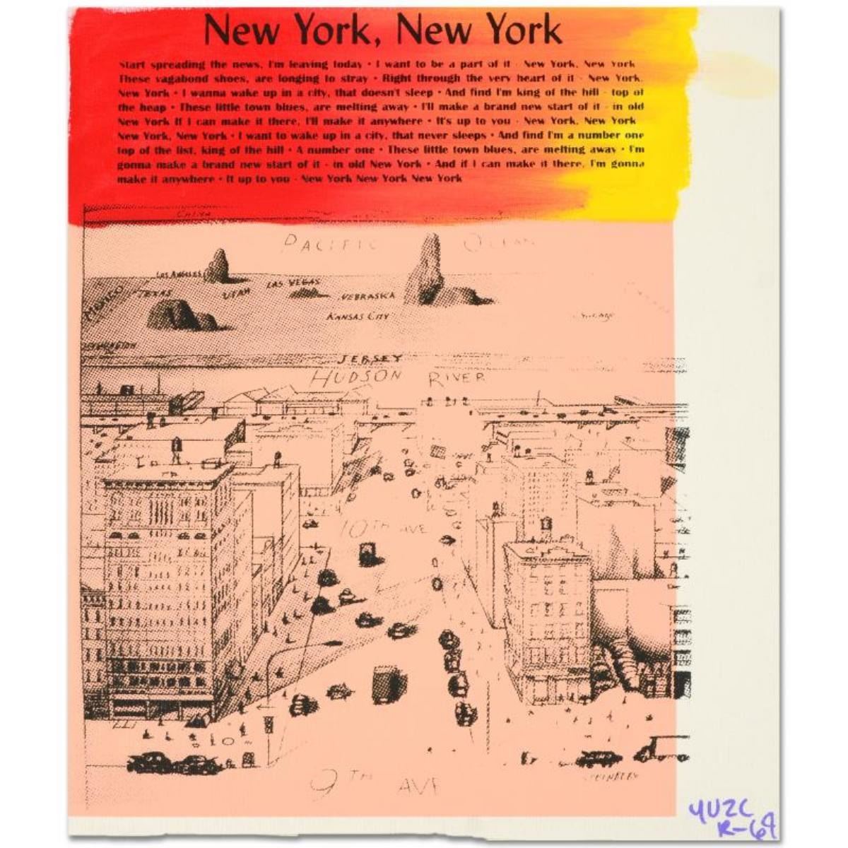 New York, New York by "Ringo" Daniel Funes. "New York, New York" is a one-of-a-kind hand-pulled silkscreen and mixed media painting on canvas by Ringo (Daniel Funes) - protege of Andy Warhol's apprentice, Steve Kaufman. This piece is hand signed by the artist and Includes Certificate of Authenticity. This piece comes from the Andy Warhol Legacy Series. Measures approx. 14" x 16" (image). ** Please note: the signature for this piece is located within the right border and will be outside the display image when framed; see photo for reference. **