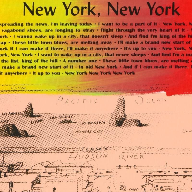 "New York, New York" is a one-of-a-kind hand-pulled silkscreen and mixed media painting on canvas by Ringo (Daniel Funes) - protege of Andy Warhol's apprentice, Steve Kaufman. This piece is hand signed by the artist and Includes Certificate of Authenticity. This piece comes from the Andy Warhol Legacy Series. Measures approx. 14" x 16" (image). ** Please note: the signature for this piece is located within the right border and will be outside the display image when framed; see photo for reference. **