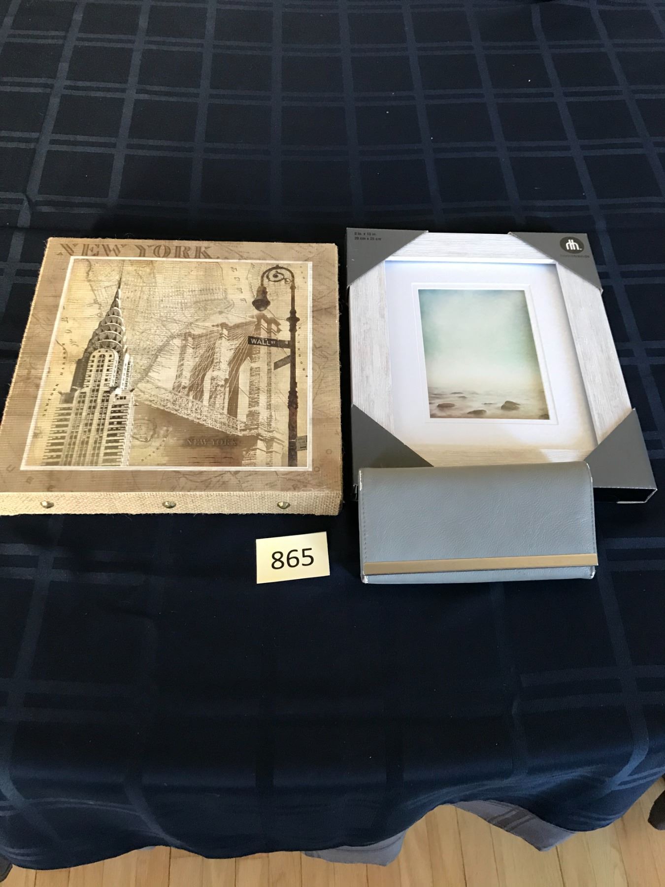 New York Print on Canvas; New 8" x 10" Frame; 1 Used Ladies Grey Wallet