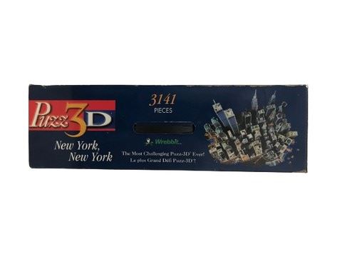 Puzz 3D 3d puzzle of New York, New York with 3141 pieces. Discontinued in stores. Box is in tact. Has some visible wear on the edges. Package contents have been open but all pieces appear to be present.