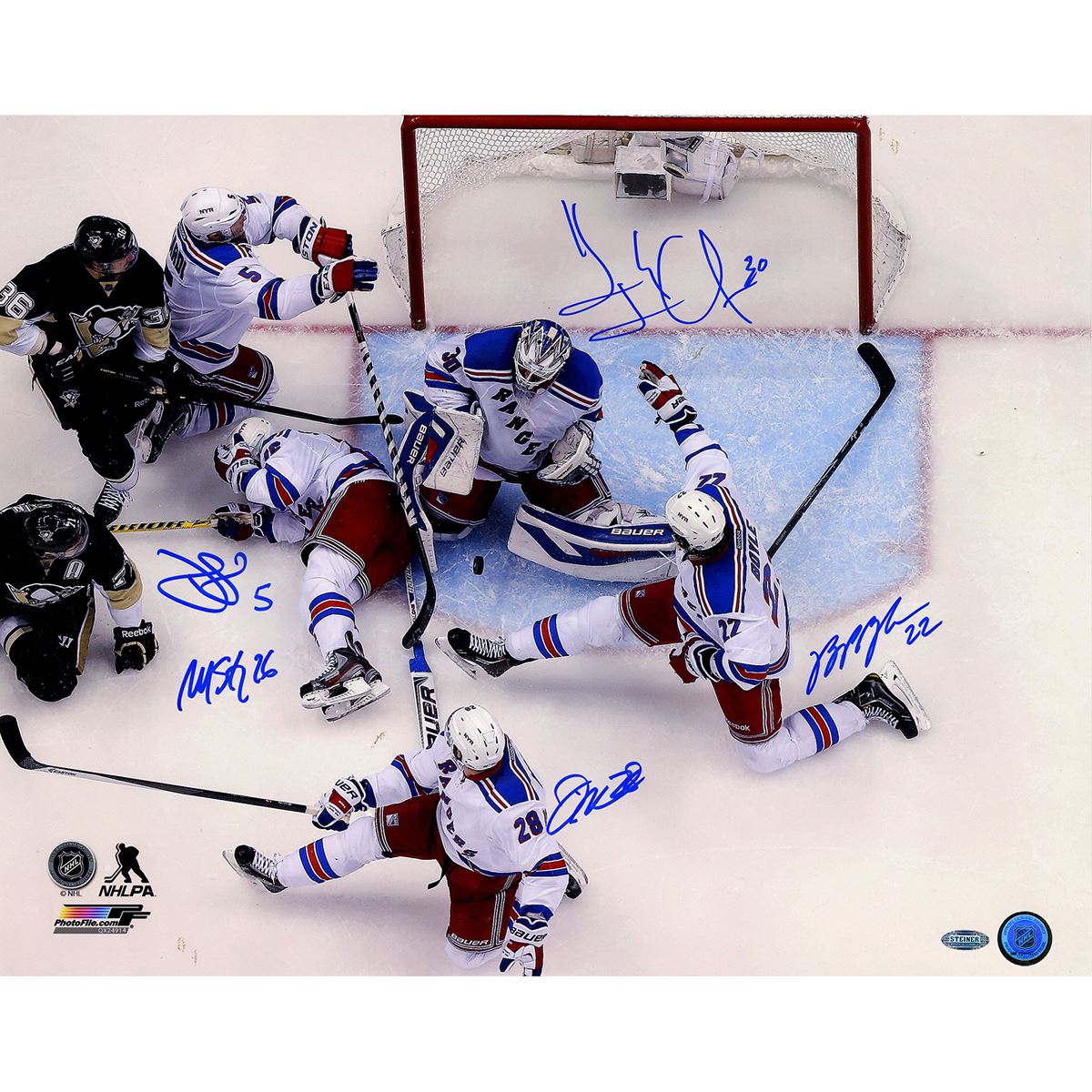 New York Rangers Multi Signed Key Moment in Game 7 vs. Penguins 16x20 Photo (5 Sigs)
