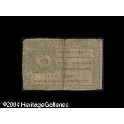 New York September 2, 1775 $2 Very Fine. Repaired a New York September 2, 1775 $2 Very Fine.