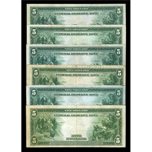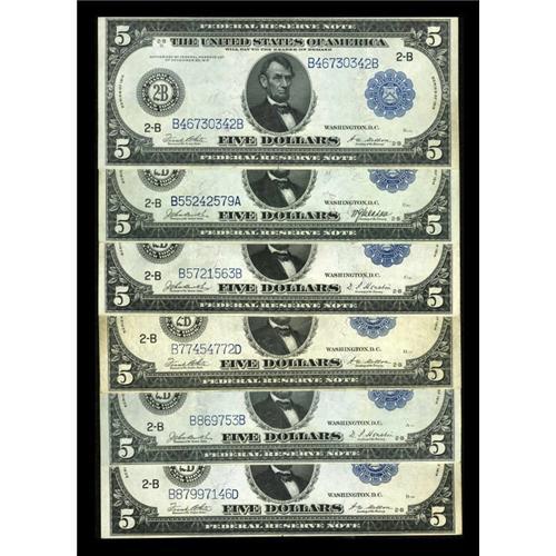 <B>New York 1914 Federal Reserve Note Sextet.</B></I> This group lot contains a Fr. 848, Fr. 850 (2), Fr. 851a, and Fr. 851c (2). All the notes are crisp and very colorful with most grading <B>VF/XF</B></I> and only one exhibiting a minor edge nick.<BR><BR><b>Shipping:</b> Coins & Currency (<a target="_blank" href="http://www.heritageauctions.com/common/shipping.php">view shipping information</a>)