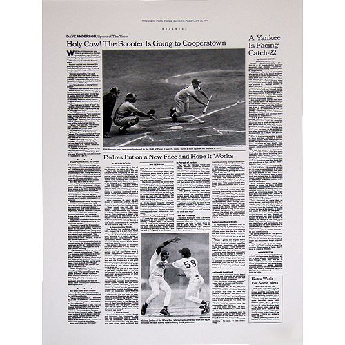 New York Times Cover Reprint February 27, 1994 Scooter is Going to Cooperstown