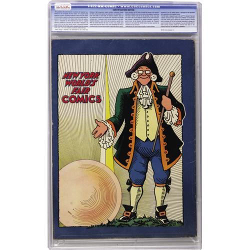 There's a story behind the 15-cent sticker that covers up the original 25-cent price on this copy. This is one of the few comics to ever have its newsstand price <I>lowered</B></I> -- DC found out the hard way that kids (or rather their parents) just weren't willing to pay a quarter when all other comics cost a dime, despite the fact that two bits bought 96 pages of comics! Now ranked among the 50 most valuable Golden Age books, this comic shot up in value and significance once collectors realized that this, not <B>Adventure</B></I> #40, was the first appearance of the Sandman. This book also served as the prototype for the later <B>World's Finest Comics</B></I> series. Also appearing are Superman (never mind his blond hair on the cover), detective Slam Bradley (written and drawn by Jerry Siegel and Joe Shuster, as was the Superman feature) and more. Bob Kane (drawing gag features), Creig Flessel, and Sheldon Moldoff are among the issue's artists. The cover was a team effort between Vincent Sullivan and Fred Guardineer. By the way, Overstreet's notation is enough to make any comic collector hyperventilate: "...everyone (who) sent a quarter through the mail for it received a free copy of <B>Superman</B></I> #1 or 2 to make up the dime difference." Overstreet 2006 FN 6.0 value = $6,300. CGC census 12/06: 2 in 6.0, 4 higher.<BR><BR><b>Shipping:</b> Slabbed Comic (<a target="_blank" href="http://www.heritageauctions.com/common/shipping.php">view shipping information</a>)