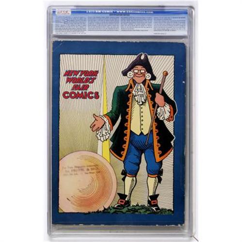 <B>New York World's Fair Comics 1939 (DC, 1939) CGC FN+ 6.5 Cream to off-white pages.</B></I> Not only does this square bound giant have the first appearance of the Sandman, it has been called "the first newsstand comic with a commercial tie-in." And of course, the format is the direct predecessor of the successful <B>World's Finest Comics</B></I>. It's listed at number 36 in Overstreet's ranking of the most valuable Golden Age books. The book's stories were set at the World's Fair; and the crimefighting fairgoers included the aforementioned Sandman as well as Superman (he's the <I>blond</B></I> guy on the cover!), plus gumshoe Slam Bradley (written and drawn by Jerry Siegel and Joe Shuster, as was the Superman feature) and Zatara the Magician (drawn by Fred Guardineer). The roster of artists also included Bob Kane (drawing humor material), Creig Flessel, and Sheldon Moldoff. The cover was a team effort between Vincent Sullivan and Fred Guardineer. Overstreet 2007 FN 6.0 value = $6,300; VF 8.0 value = $14,700. CGC census 6/07: 1 in 6.5, 3 higher.<BR><BR><b>Shipping:</b> Comics - Slabbed (certified) (<a target="_blank" href="http://www.heritageauctions.com/common/shipping.php">view shipping information</a>)