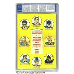 <B>New York World's Fair Comics #nn (DC, 1940) CGC GD/VG 3.0 Cream to off-white pages.</B></I> Superman, Batman, and the Boy Wonder, Robin, welcome readers to the 1940 New York World's Fair on this Fred Burnley cover. This is an early Robin appearance, and this issue marks the first time these three popular characters appeared together. According to Jack Burnley, this comic has his first cover and interior artwork. Pre-hero DC master artist Creig Flessel lends a hand in drawing some of the interior artwork. The back cover has portraits of numerous DC characters including Zatara, Hourman, Johnny Thunder, Robin, Superman, and Batman. Overstreet 2004 GD 2.0 value = $1,128; VG 4.0 value = $2,256. <BR><BR><B>Important notice:</B> Heritage usually auctions material at the rate of 200-250 lots per hour. On some occasions eBay Live bid software or the Internet may not be able to keep up with the pace of the auction. We recommend placing a realistic absentee bid now as insurance to avoid disappointment. Occasionally the auctioneer may eliminate or reject an eBay Live bid, and the auctioneer may also reopen a lot after the close of the eBay live bidding (usually because we missed an audience bid), and may reject your bid even if it shows you as the winning bidder. By bidding via eBay Live, you agree that Heritage may award the lot to another bidder at its sole discretion under the circumstances described above or any other reasonable circumstances. Since eBay bids are not shown to us until we open the lot on the floor, we treat those bids just like floor bids. In most cases the floor responds before the eBay bid is presented to us, due to Internet lag time, so for consistency we have made it a policy that floor bids are always considered first over tie eBay live bids. Also please note that all Heritage lots purchased through eBay Live carry a 20% Buyer's Premium. Please make sure you read the Terms and Conditions before you bid.