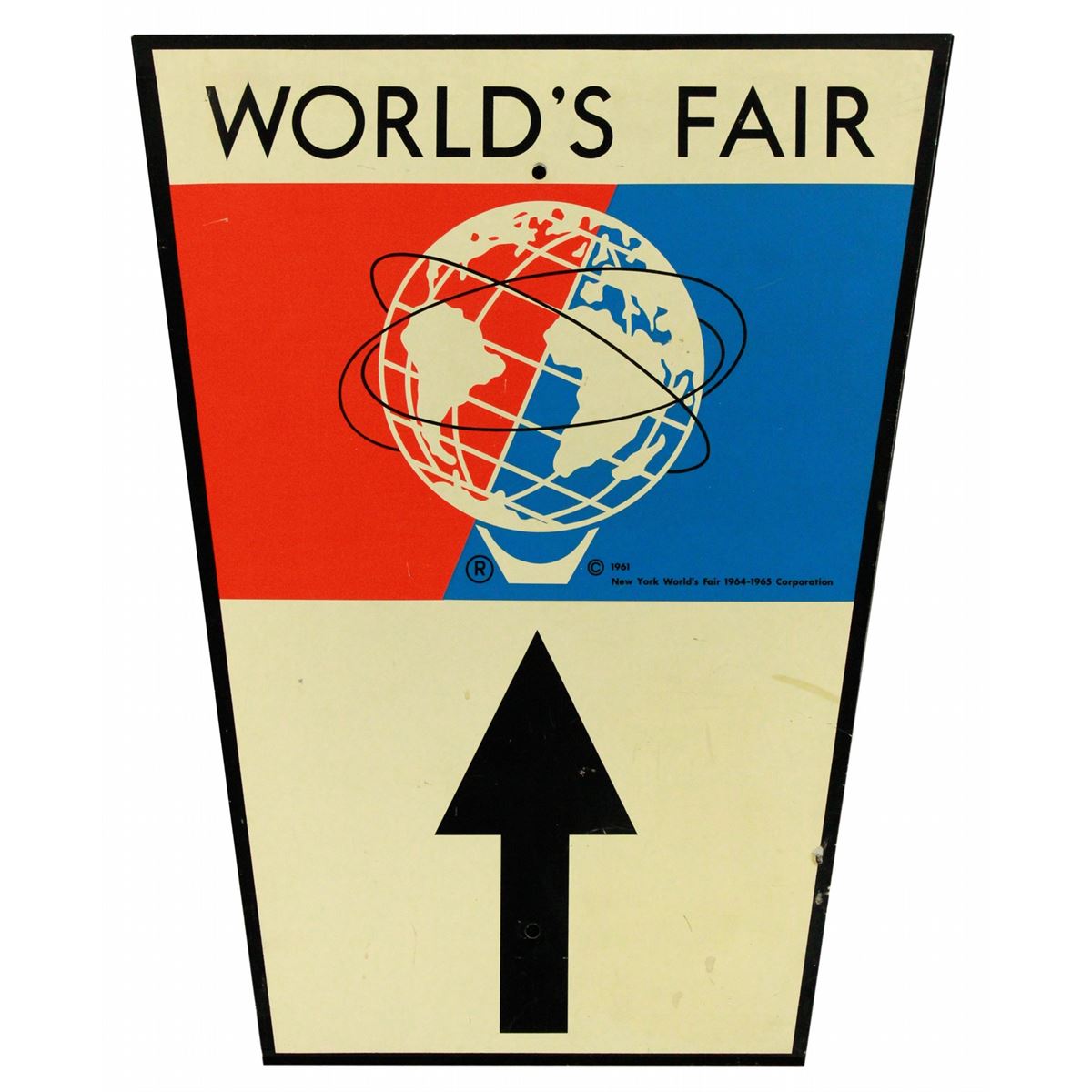 (New Your World’s Fair, 1964) Extremely rare original painted metal sign for the Unisphere Freeway. Measuring 30 x 19 in. The sign is in good condition with wear from use.