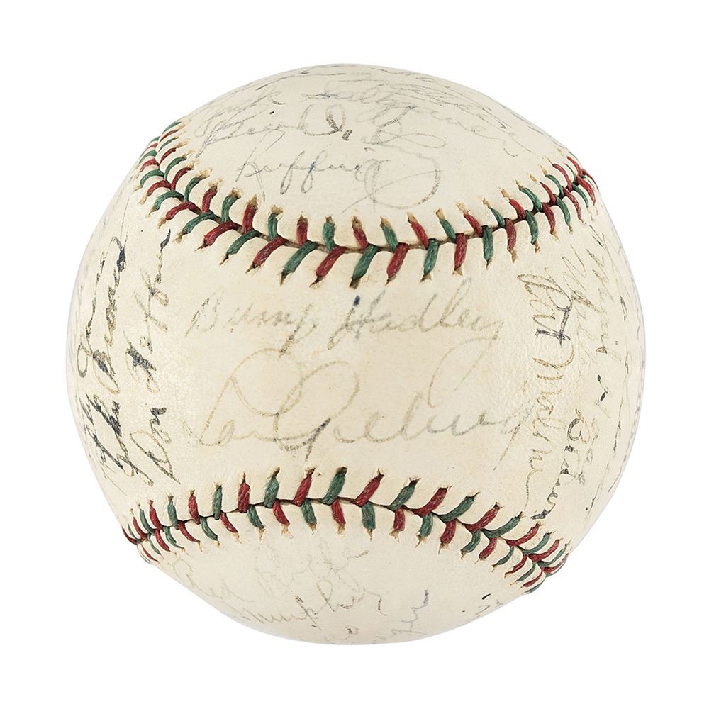 Tremendous Yankees team-signed baseball from the first of four consecutive Lou Gehrig-led World Series Champions, which includes a very scarce Willard Hershberger signature.