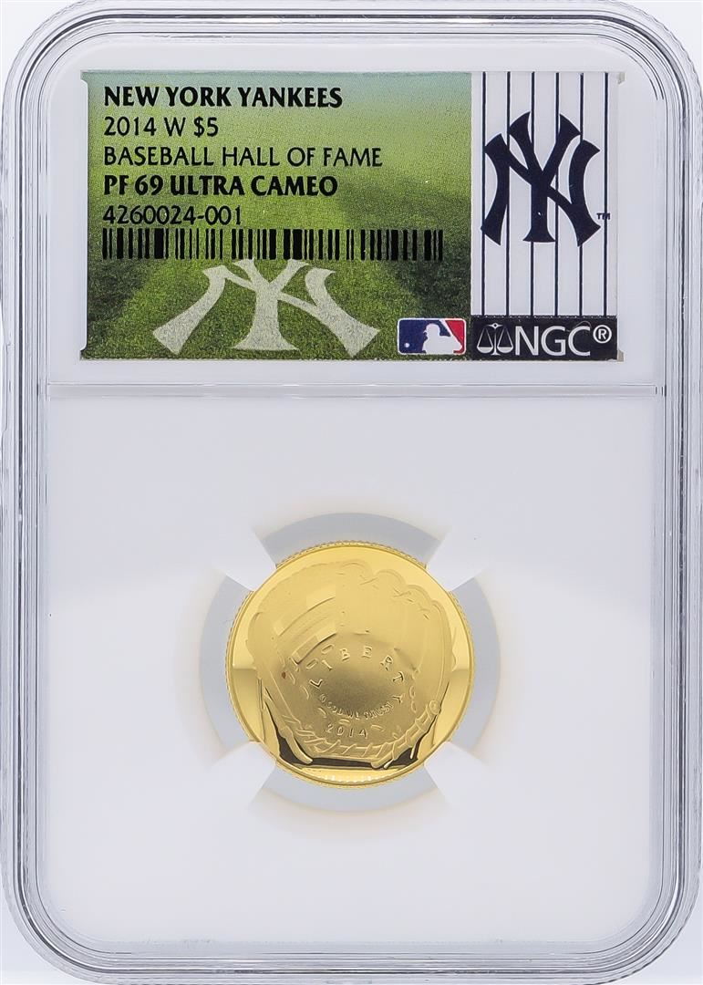 One MLB New York Yankees Hall of Fame 2014-W NGC PF69 Ultra Cameo Commemorative Gold Coin. NGC Certified.