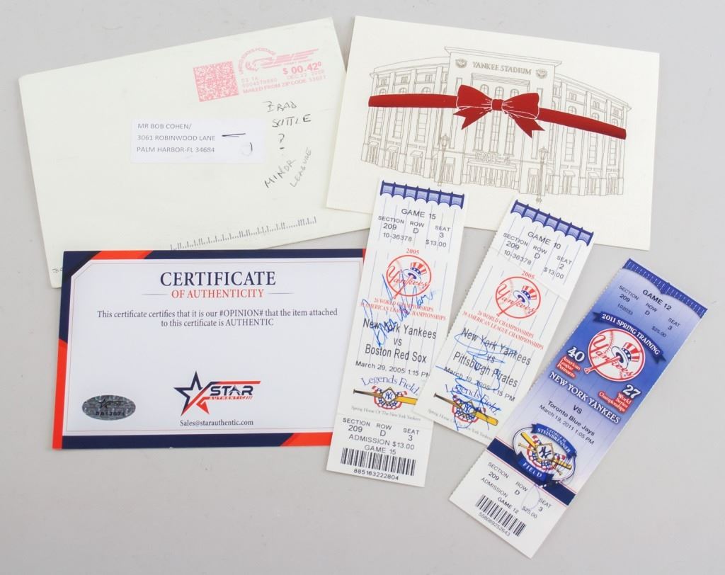 Rare New York Yankees Entrance ticket and Yankee Stadium card, game 10, 12, 15 Hand signed autograph with Bob Cohan New York Yankees Mailed Envelope with Certificate