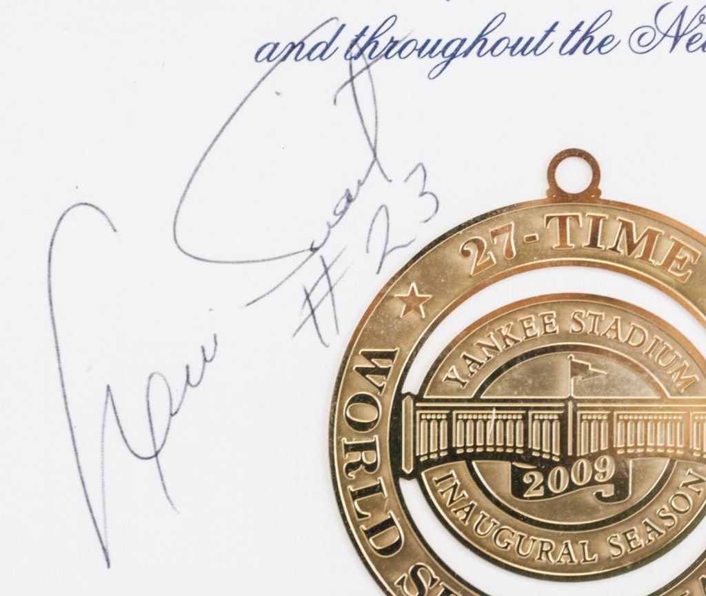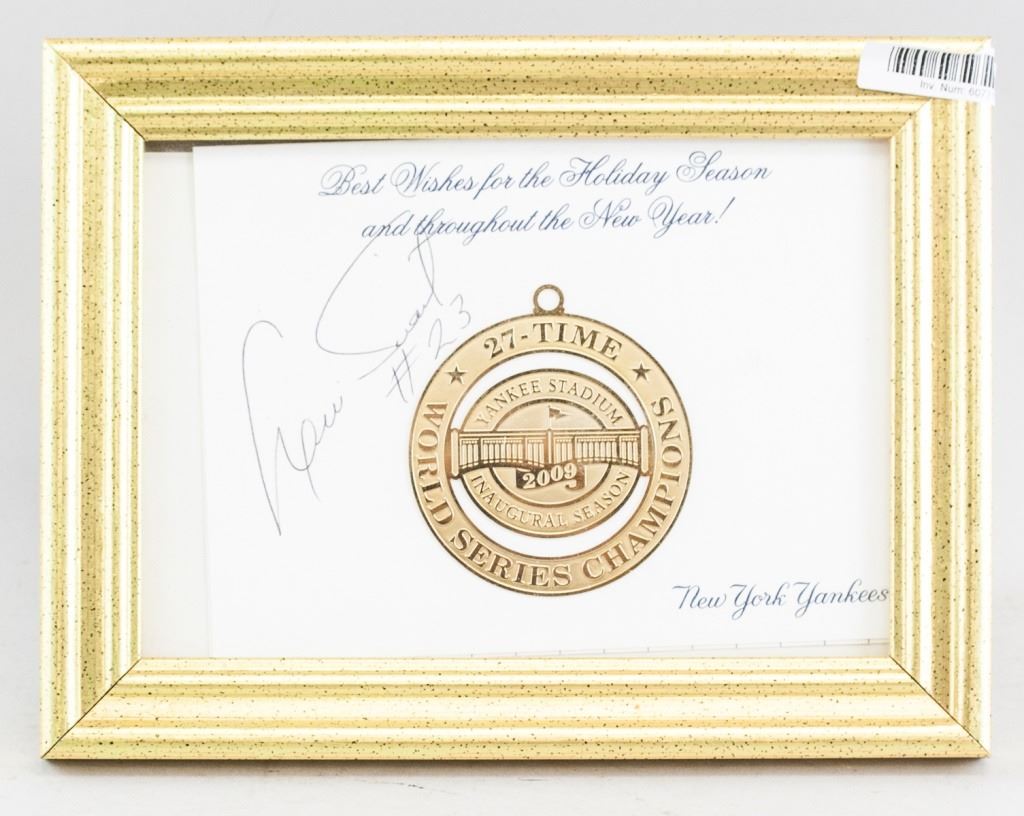 Autograph, framed. Signed, with number "23". New York Yankees World Series Champions, 2009. 11 x 15 cm (4.5 x 6 inch) F: 16 x 21.5 cm (6.5 x 8.5 inch).