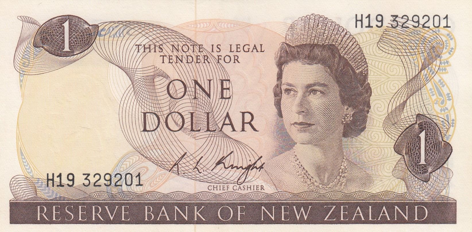 New Zealand, 1 Dollar, 1975, AUNC, p163cbr/Queen Elizabeth II portrait, serial number: H19 329201