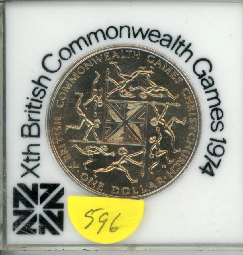 New Zealand. 10th British Commonwealth Games 1974 Dollar. BU. Housed in a custom plastic holder.