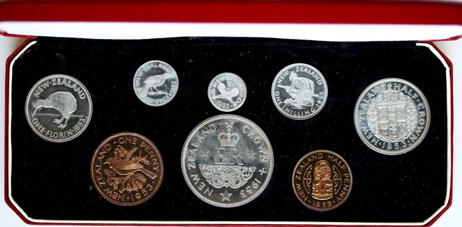 New Zealand; 1953 Proof Set (8 coins) in original case.