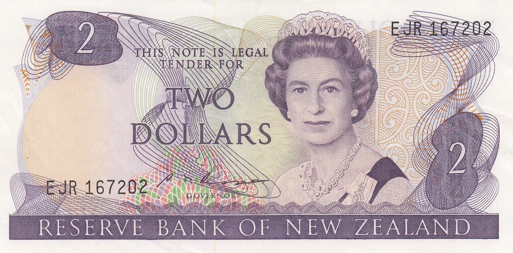 New Zealand, 2 Dollars, 1985, XF (+), p170bbr/Queen Elizabeth II portrait, sign: Russell, serial number: EJR 167202