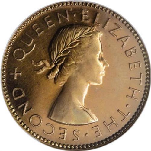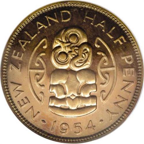 <B>Elizabeth II 4-piece Proof set 1954:</B></I> a gorgeous set, KM-PS8, all graded by NGC, consisting of the Halfpenny in PR66 RB, Penny in PR66 RB, Threepence in PR66, and Sixpence in PR65 Cameo. Each coin is exquisite. The bronzes are almost full red. Rare, exotic quality, and highly prized!<BR><BR><b>Shipping:</b> Coins & Currency (<a target="_blank" href="http://www.heritageauctions.com/common/shipping.php">view shipping information</a>)