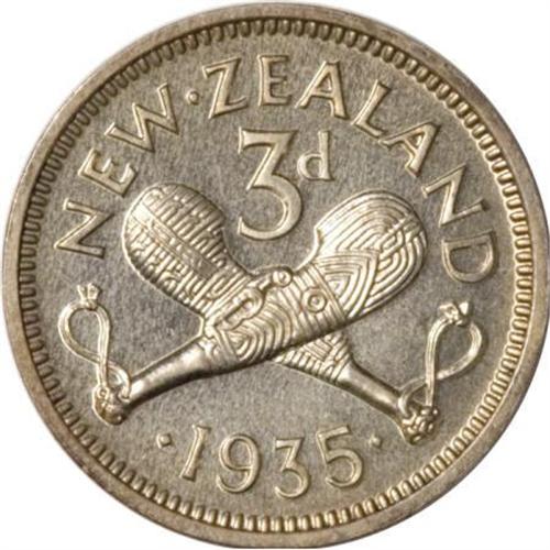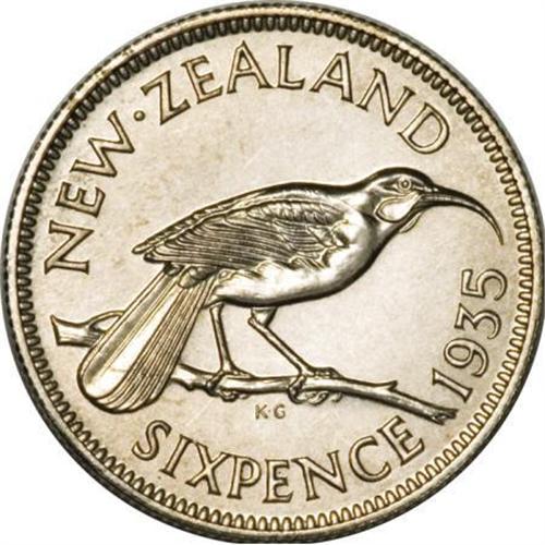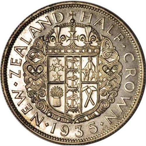 <B>George V silver Waitangi Proof Set 1935,</B></I> KM-PS3, mintage of only 364 pieces of each denomination included in the set (KM-1/6) -- crown, halfcrown, florin, shilling, sixpence and threepence. This appears to be an original set because the color is a consistent "premium silvery gray" -- the color that is most natural to these coins of .500-fineness. The crown is a Gem Proof, halfcrown choice because slightly dull, florin Gem Proof, shilling choice but for a light scratch in front of the portrait, sixpence Gem Proof, threepence choice but for a faint obverse field scratch just off the king's chin. Included is the original red Government cardboard case of issue. All in all, exceptional, rare and desirable. For a short history of this commemorative issue and the Treaty of Waitangi, please see lot 51582 of our Sale #440, June 2007. The certified set in that lot sold for $8,625.<BR><BR><b>Shipping:</b> Coins & Currency (<a target="_blank" href="http://www.heritageauctions.com/common/shipping.php">view shipping information</a>)
