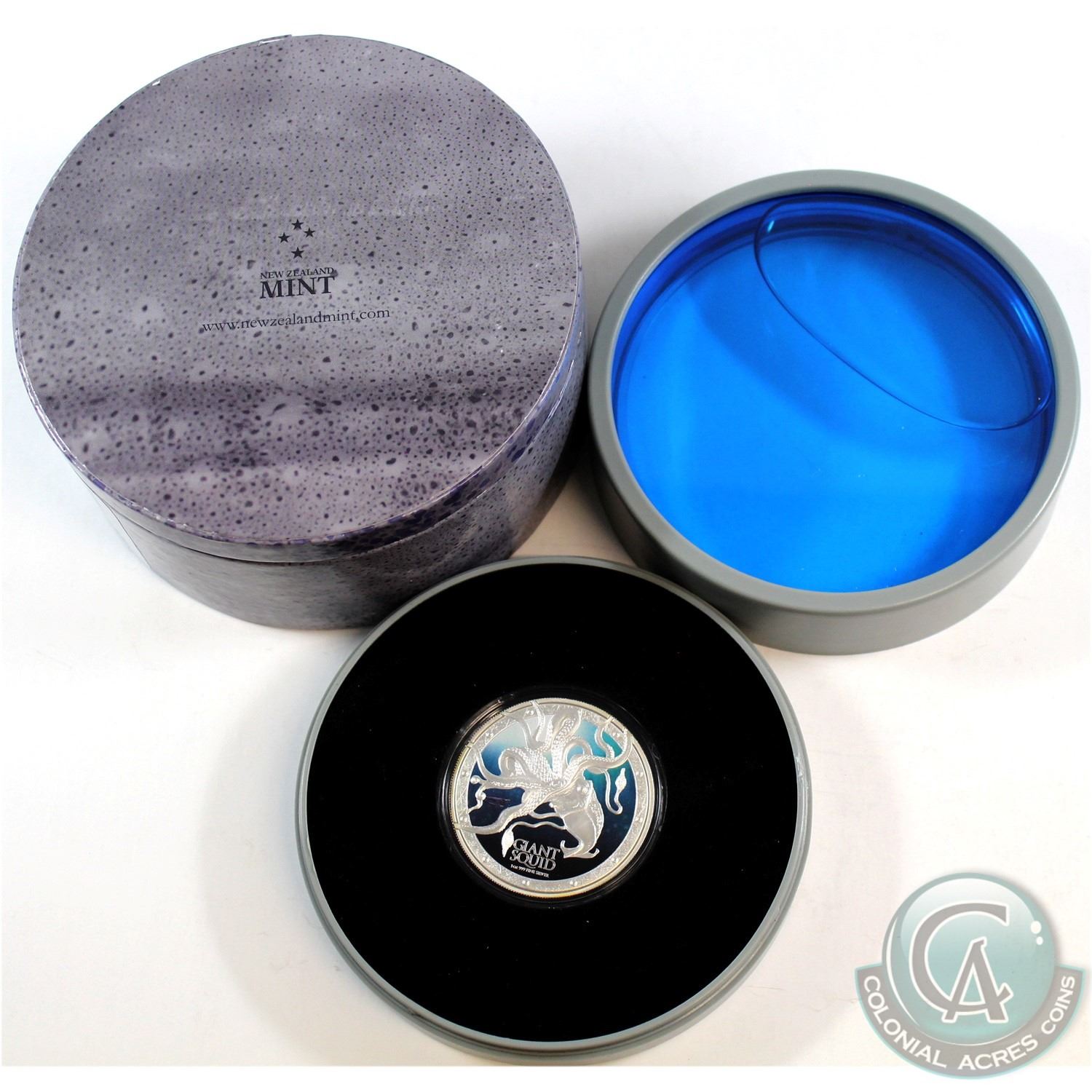 New Zealand Mint Issue: 2015 Niue $ Ocean Predators - Giant Squid 1oz Fine Silver Proof Coin (plastic display case is scuffed & coin lightly toned). Tax Exempt