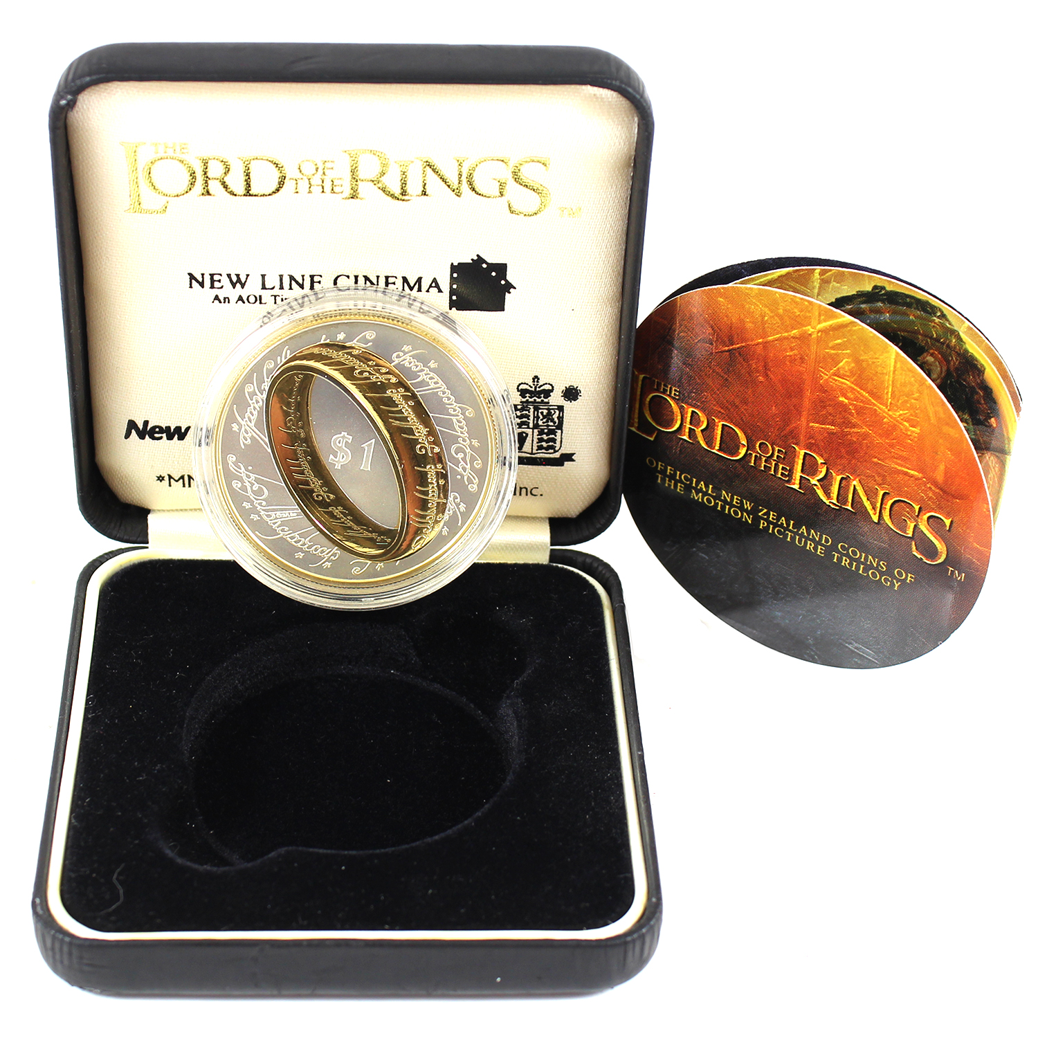 Coin is 28.28g & .925 fine with selective gold plating. Reverse of coin has warm orange toning. Some wear to capsule.
