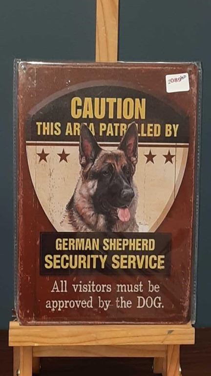 New caution German Shepherd Security Service metal sign 8 in by 12 in all visitors must be approved