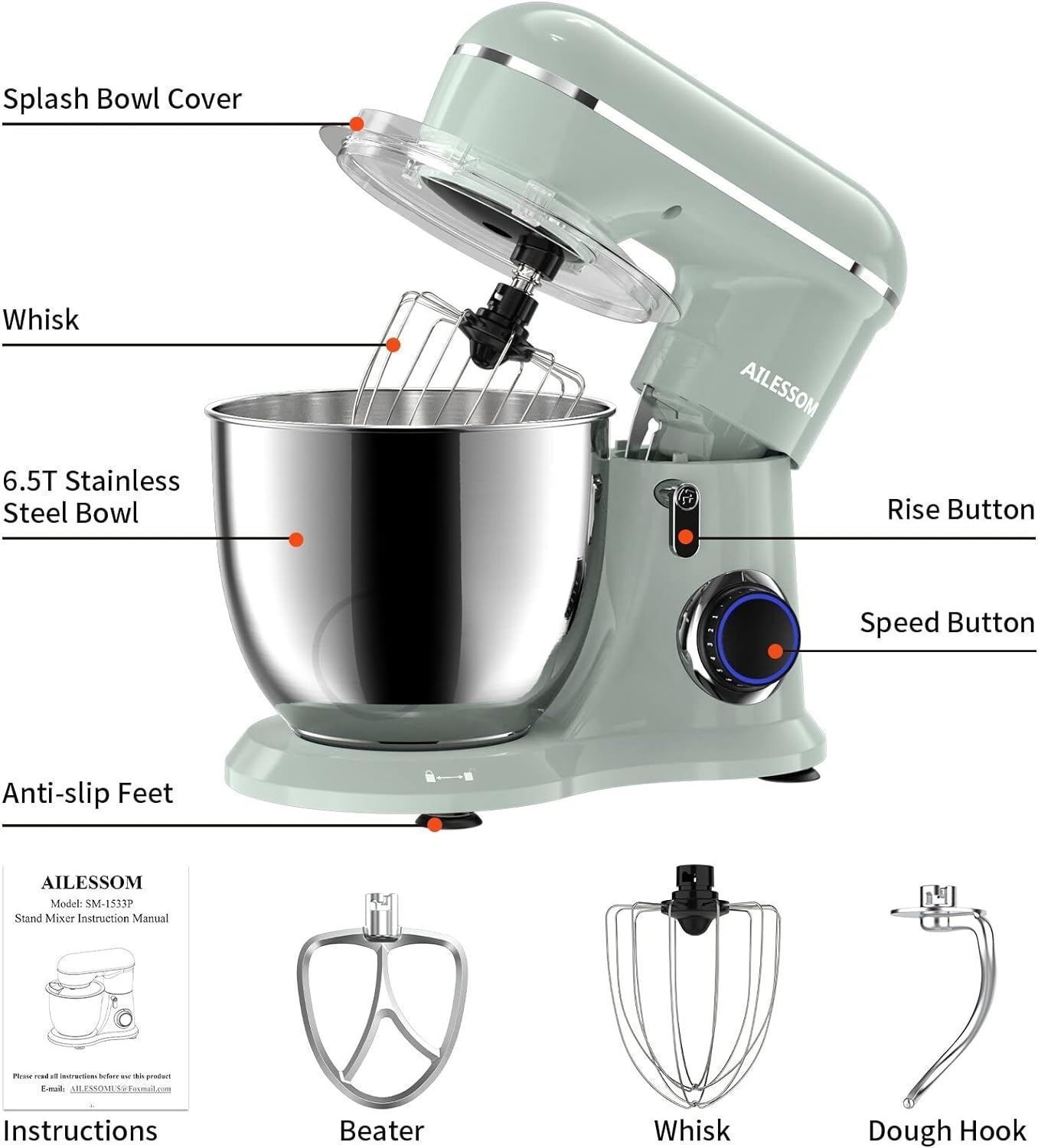 Retail price over 350, Attachments include 6.5QT Bowl, Dough Hook, Beater, Whisk