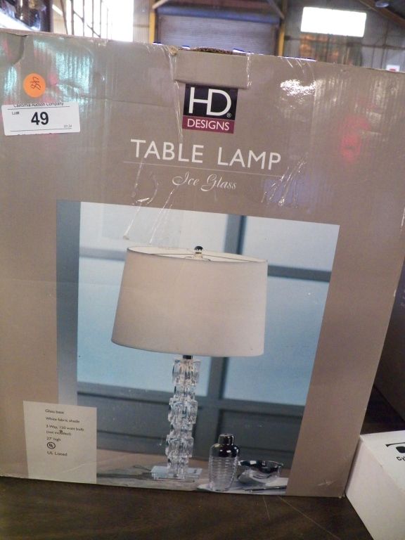 New in Box Ice Glass Table Lamp