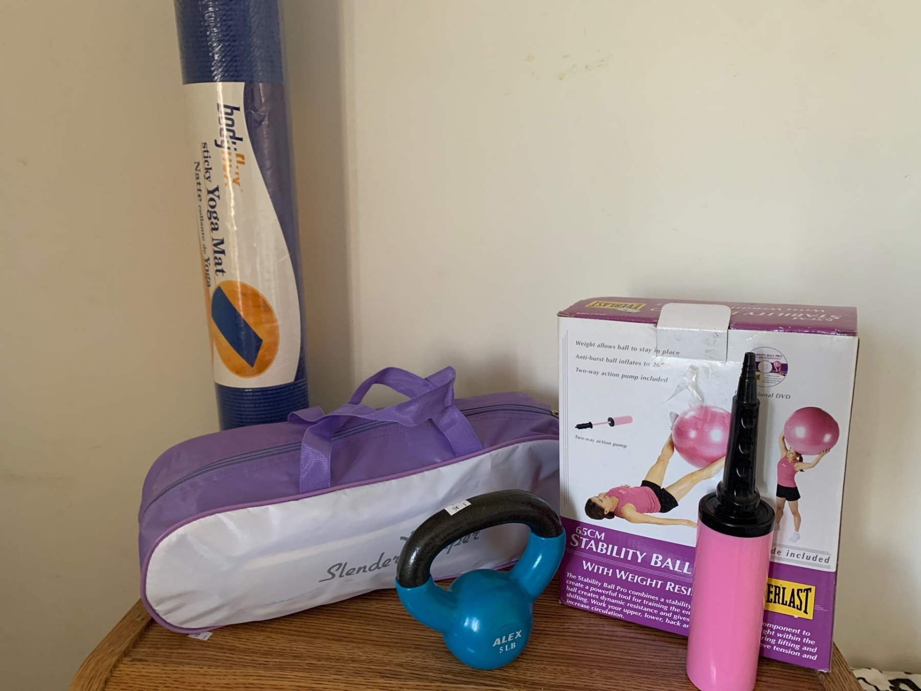 New in the Box Everlast Yoga Ball, 5LB Weight, New Yoga Mat with New Slender Shaper