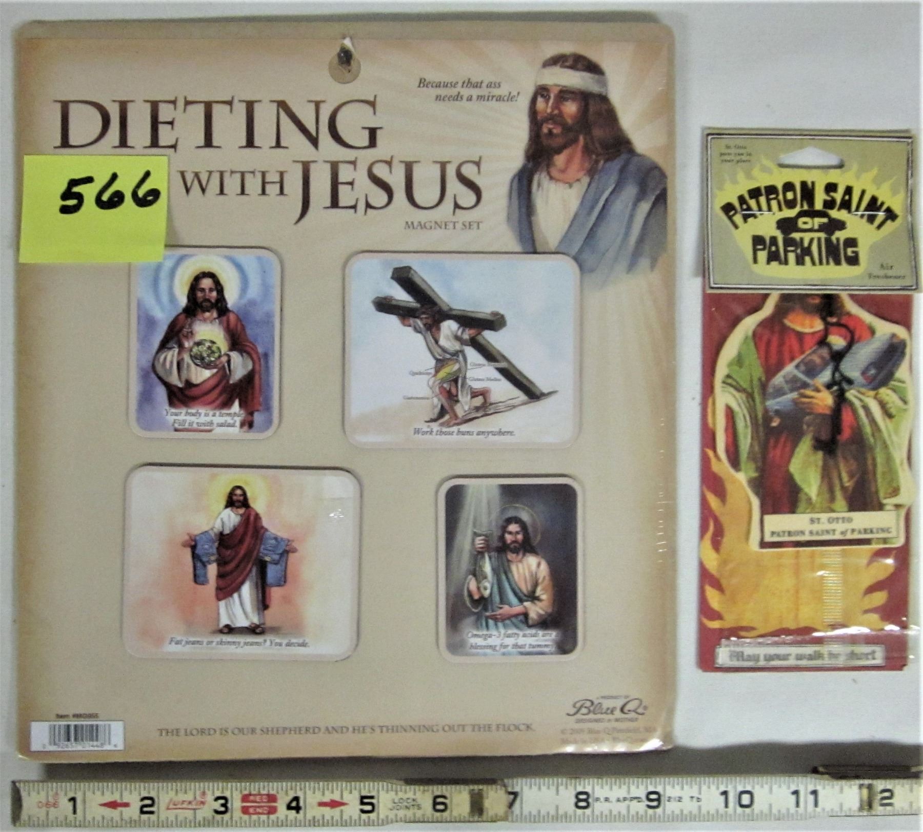 New set of 4 "Dieting with Jesus" magnet set plus st. Otto air freshener patron saint of parking