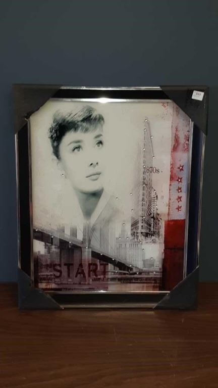 New vintage lighted Audrey Hepburn picture 18 in by 22 in