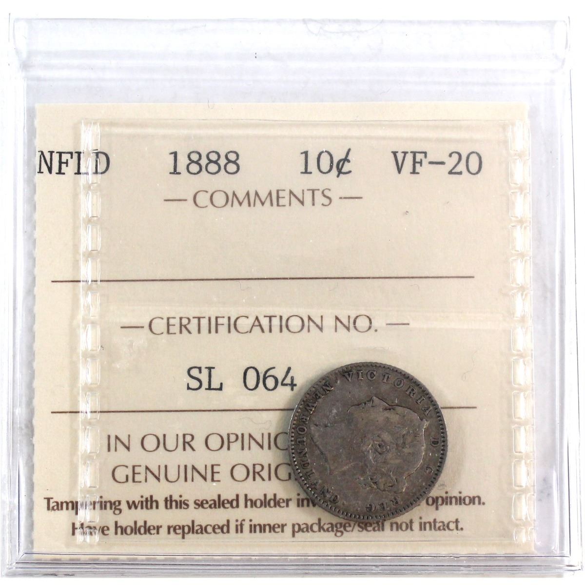 NewFoundland 10-cent 1888 ICCS Certified VF-20.