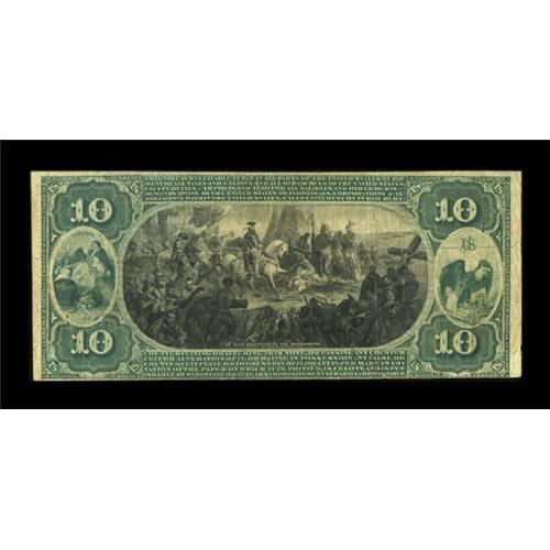 <B>Newark, NJ</B></I> - $10 1875 Fr. 416 <B>The Mechanics NB</B></I> Ch. # 1251<BR> This note comes from one of this city's scarcest issuers, with this bank entering into receivership in 1881 after emitting First Charter notes only. This is the only $10 known from here, and one only a literal handful of FCP tens known from all Newark banks combined. Attractive <B>Fine-Very Fine,</B></I> one of this collection's most significant Newark items. <BR><I>From The John Ameen Collection</B></I><BR><BR><b>Shipping:</b> Coins & Currency (<a target="_blank" href="http://www.heritageauctions.com/common/shipping.php">view shipping information</a>)