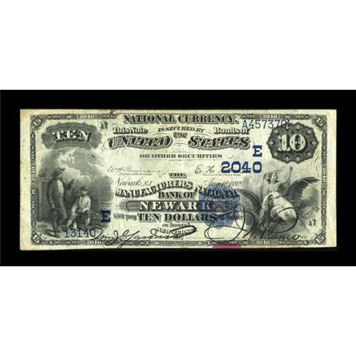 <B>Newark, NJ</B></I> - $10 1882 Date Back Fr. 540 <B>The Manufacturers NB</B></I> Ch. # (E)2040<BR> A bright Second Charter Date Back, but with a small ink stain in the bottom margin. <B>Fine-Very Fine.</B></I> <BR><I>From The John Ameen Collection</B></I><BR><BR><b>Shipping:</b> Coins & Currency (<a target="_blank" href="http://www.heritageauctions.com/common/shipping.php">view shipping information</a>)