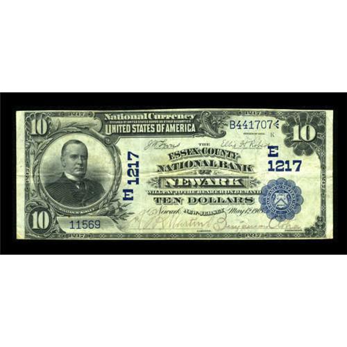 <B>Newark, NJ</B></I> - $10 1902 Date Back Fr. 616 <B>The Essex County NB</B></I> Ch. # (E)1217<BR> The next to last type issued by this bank, which liquidated on the last day of 1917. Bright <B>Very Fine,</B></I> with a few pinholes more than offset by clear signatures and bright inks. <BR><I>From The John Ameen Collection</B></I><BR><BR><b>Shipping:</b> Coins & Currency (<a target="_blank" href="http://www.heritageauctions.com/common/shipping.php">view shipping information</a>)