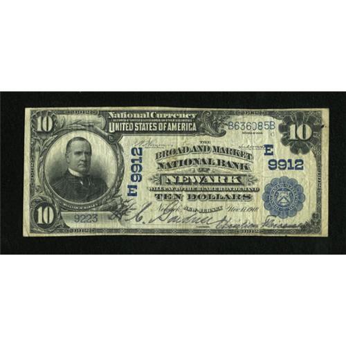 <B>Newark, NJ</B></I> - $10 1902 Date Back Fr. 619 <B>The Broad & Market NB</B></I> Ch. # (E)9912<BR> The originality of the paper carries this piece to a full <B>Fine </B></I>grade.<BR><I>From The John Ameen Collection</B></I><BR><BR><b>Shipping:</b> Coins & Currency (<a target="_blank" href="http://www.heritageauctions.com/common/shipping.php">view shipping information</a>)
