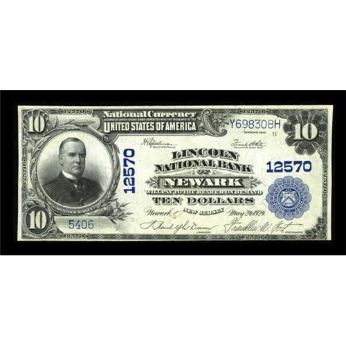 <B>Newark, NJ</B></I> - $10 1902 Plain Back Fr. 635 <B>Lincoln NB</B></I> Ch. # 12570<BR> Bright <B>Extremely Fine</B></I> with engraved signatures of F. Randolph Dunn and Franklin W. Fort. Mr. Fort served three terms in the U.S. House of Representatives from 1925 through 1931. <BR><I>From The John Ameen Collection</B></I><BR><BR><b>Shipping:</b> Coins & Currency (<a target="_blank" href="http://www.heritageauctions.com/common/shipping.php">view shipping information</a>)