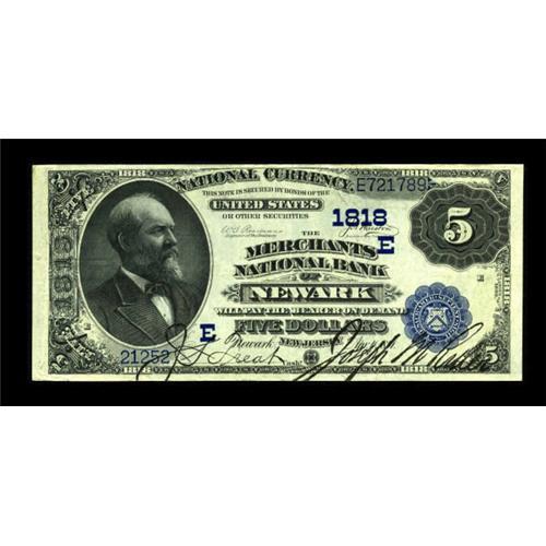 <B>Newark, NJ</B></I> - $5 1882 Date Back Fr. 532 <B>The Merchants NB</B></I> Ch. # (E)1818<BR> A well margined example of this better New Jersey type. <B>Extremely Fine,</B></I> new in appearance until closely examined. <BR><I>From The John Ameen Collection</B></I><BR><BR><b>Shipping:</b> Coins & Currency (<a target="_blank" href="http://www.heritageauctions.com/common/shipping.php">view shipping information</a>)